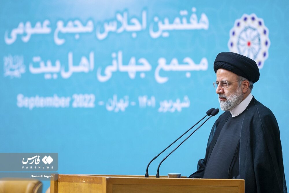 قال الرئيس سيد إبراهيم رئيسي في الدورة السابعة للجمعية العمومية لجمعية أهل البيت العالمية المنعقدة اليوم الخميس (العاشر من شهر شباط) في طهران: إن أهل البيت (ع) سر كل خير و