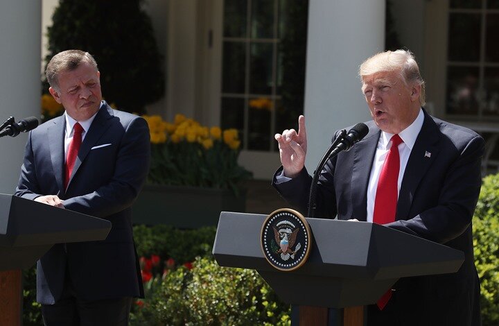 وفقًا لإسنا ، استنادًا إلى مقتطفات من كتاب “The Divider: Trump in the White House، 2017-2021” الذي كتبه كاتبان أمريكيان من “نيويوركر” و “نيويورك تايمز” في يناير 2018 ، دونالد عرض ترامب الرئيس السابق للولايات المتحدة تحت عنوان “الصفقة الكبرى” عبد الله الثاني ، ملك الأردن ، السيطرة على الضفة الغربية.